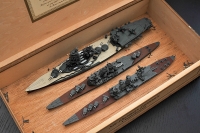 今回出て来たのは重巡洋艦「利根」と「高雄」、それに航空戦艦「日向」だと思われます。この3隻の共通点は、水上艦載機を多めに積んだ戦術的作戦向けの船舶だということかな。私のこだわりでセレクトしてあります。そして・・・1/4世紀以上経っているのについこの間組み立てていたかの様な雰囲気が残ってますね。1次塗装をして軽くくみ上げてあります。できれば完成させてあげたい所ですけど、残りのパーツが何処にあるのか不明です。もしかしたら運良く作りかけの本体だけが残ったのかも知れません。