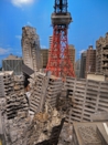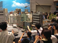 今回の展示のもう一つの目玉としてあったのが、この特撮博物館の為に作った短編映画「巨神兵東京に現る」の上映とその時に使ったセットの復元模型。巨神兵は元々は宮崎駿監督の作品「風の谷のナウシカ」に出て来た人型兵器(庵野監督はある意味宮崎監督の弟子ですから直接の繋がりがあります)その巨神兵が東京に現れたらという設定で作られた映像は日本の特撮技術を駆使した見応えのある迫力でした。セットの方はこのコーナーのみ撮影OKの展示で、大勢が列に並んでセットの中に入り撮影していました。私も長い列に並んで壊れた東京タワーを鑑賞して来ました・・・