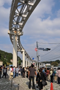 このモノレールはいわゆる懸垂式(吊り下げ型)という奴で、下方の視界が大変良いです。同じ形式は千葉市の都市モノレールがあり、フランスから導入したサフェージュ式というのを元にしているとの事。千葉市は自分の住んでいる所から割と近いのに、普段用事がないので立ち寄らず、そのモノレールは乗った事がありません。そちらも近いうちに乗ってみたいですね・・・