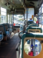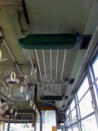 まぁそれは置いておいて、古いバスの車内にはかつて見慣れたものがあちらこちらに。例えば 天井近くには電車と同じように荷物を載せる棚がありましたし、降車を知らせるボタンには長いキャッチが書いてある。乗降扉の付近には非常用の器具などが入った木箱が置いてある・・・それらはかつてみな当たり前の風景でした。